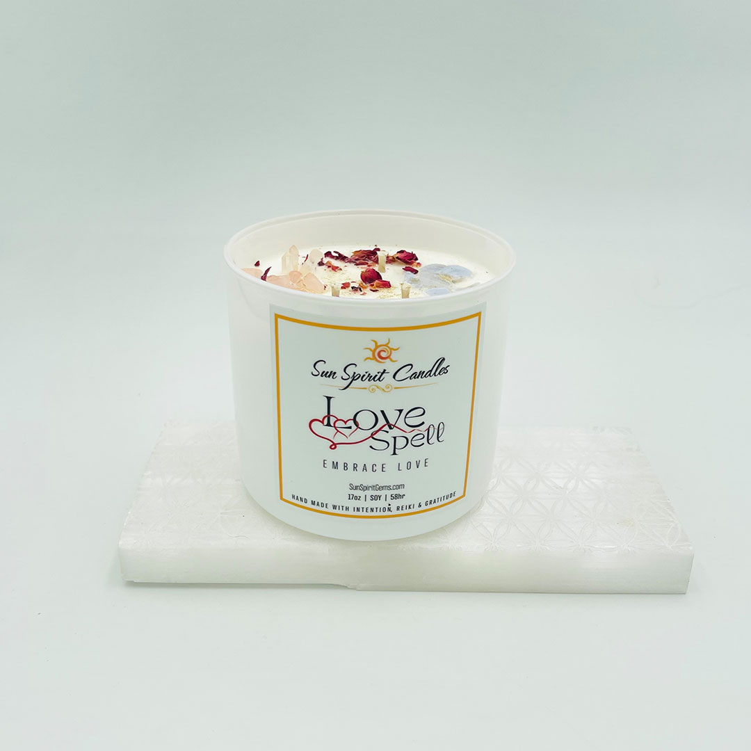 The Love Spell Candle was created with the intention to bring awareness of the love that is all around us. The intoxicating smell and visual effects of this candle are like a warm embrace from heavenly realms inspiring us to spread love and kindness.